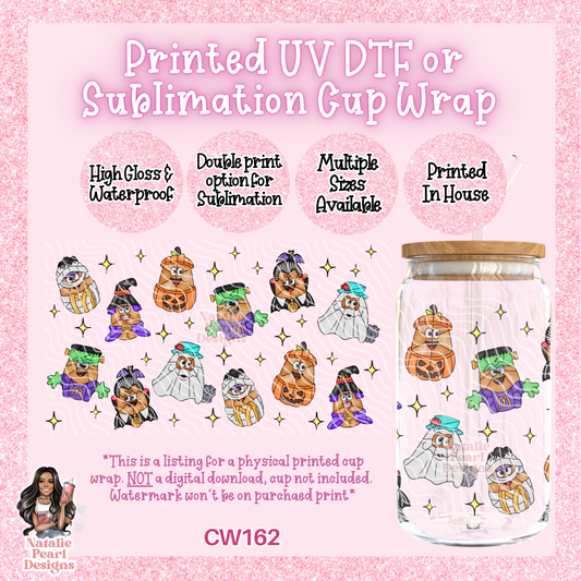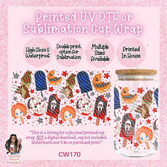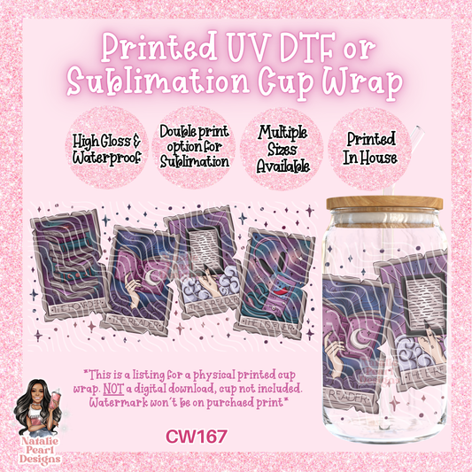 Some UV DTF cup wraps have matching decals, seamless patterns or skinny cup wraps.