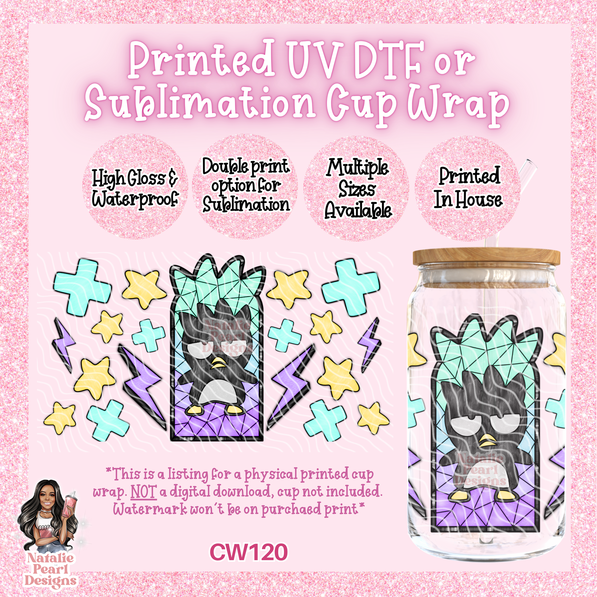This is a listing for ONE PRINTED UV DTF or Sublimation cup wrap of your sizing choice and style.