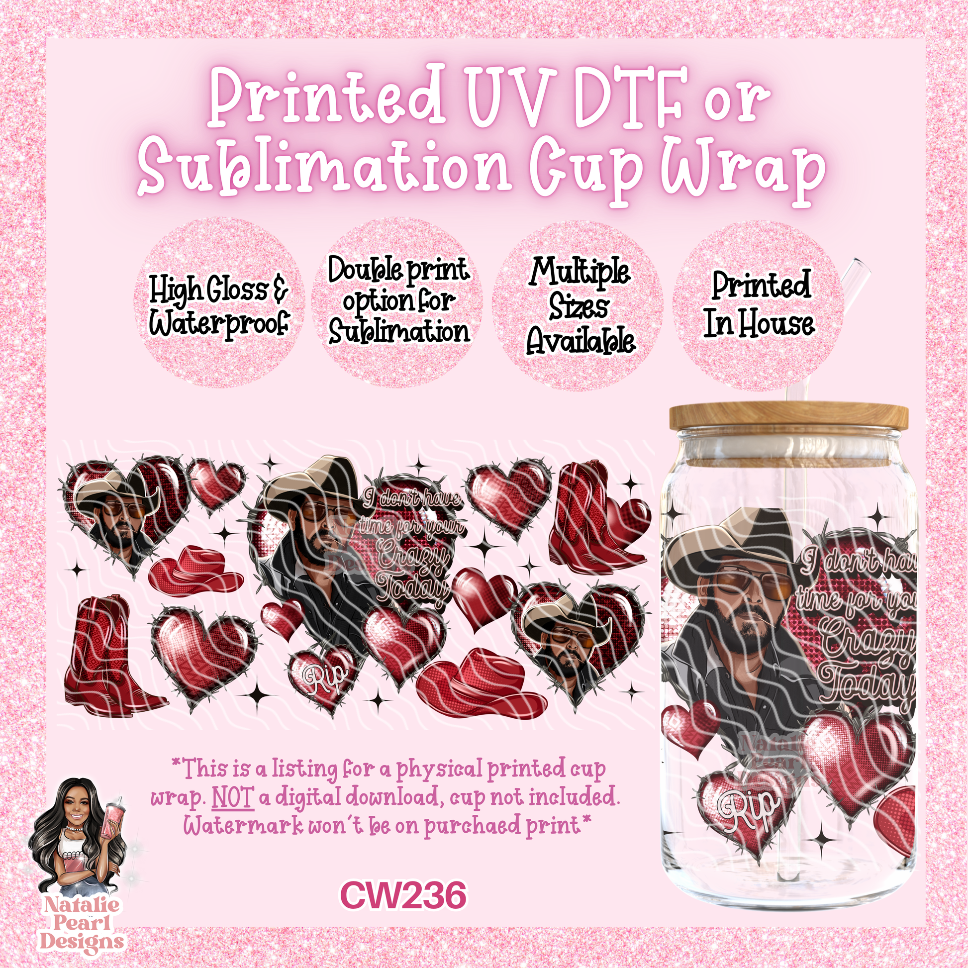 This is a listing for ONE PRINTED UV DTF or Sublimation cup wrap of your sizing choice and style.